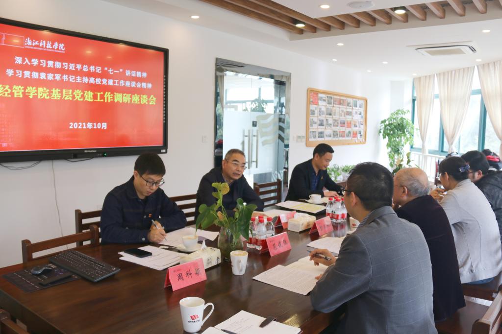 党建信息 首页 新闻中心 党建信息 正文 校党委书记龚建立到我院调研指导基层党建工作 10月24日校党委书记龚建立到我院开展基层党建工作专题调研,学院党委书记黎东升、党委副书记范俊强以及支部书记代表参加会议,学校办公室负责人陪同调研。 黎东升汇报了学院党建工作情况,范俊强汇报了学生思想政治教育、学生成长成才服务以及毕业生就业服务等情况,组织员和学生支部书记等重点围绕基层党建工作中存在的问题和难点进行工作交流。 在听取汇报后,龚建立强调,经管学院要深入学习领会、贯彻落实好习近平总书记重要讲话和省高校党建工作座谈会精神,并对学院下一步工作提出三点要求:一是利用好周四下午时间,切实组织教职工深入开展政治理论和业务学习研讨,不断凝心聚力;二是持续推进学科专业建设,不断提升学院内涵发展能力;三是利用好学校岗位聘用改革契机,采取有效措施,激励广大教师担当好为党育人、为国育才的重任,为攻坚更名大学贡献经管力量。