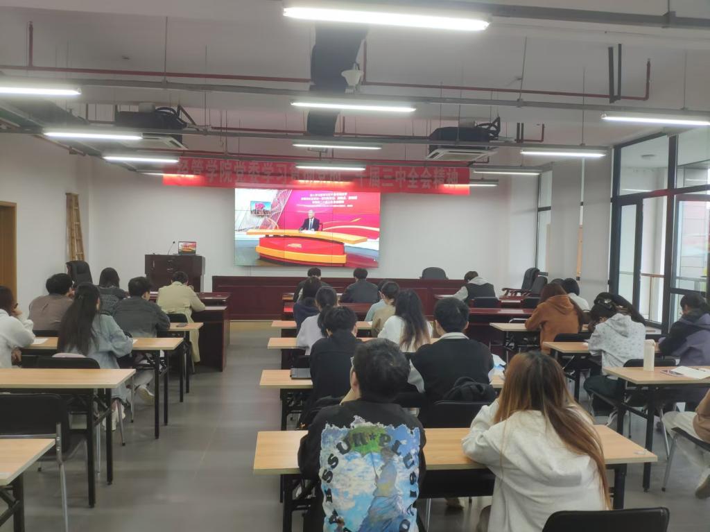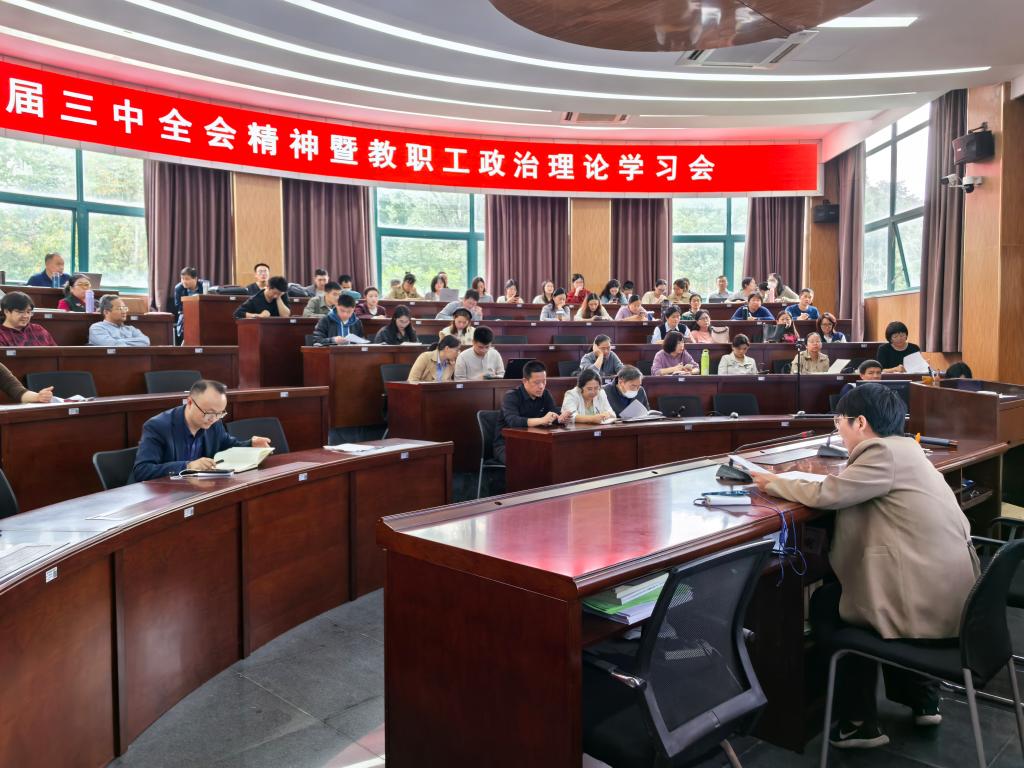 党委书记刘发明作学习动员讲话。他指出学习贯彻党的二十届三中全会精神是当前和今后一个时期的一项重要政治任务,希望全院师生要以党的二十届三中全会精神为指引,深入学习精神实质,并与当前的学科建设、巡察整改、深化改革、年末的大事要事等任务结合起来,将学习收获转化为工作改革的动力,助推学院高质量发展。