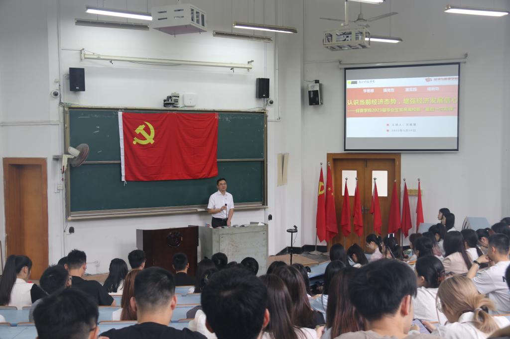 为了使全体毕业生党员更深刻地认识到自身肩负的使命和责任,引导毕业生党员充分认识当前经济态势,不断加强党员党性修养,增强党员自我完善、自我革新、自我提高的自觉意识,经管学院于519日为2023届毕业生党员开展了以“认识当前经济态势、增强经济发展信心”为主题的最后一次党课。党课由学院党委副书记范俊强主讲。