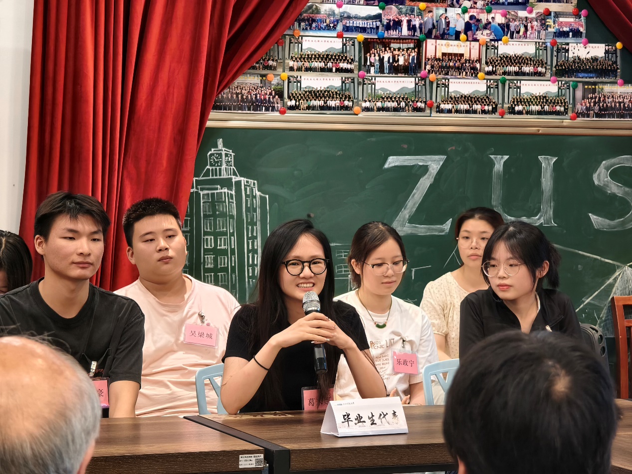 毕业生代表们畅谈了在校四年生活的点点滴滴,表达了对母校、对老师们的感恩之情。毕业生们感谢学校、学院提供的良好平台,抒发了对于母校更名成功的激动之情。同时就课程设置、学业指导、校园生活等方面对学院提出了建议和期望,与会领导认真聆听了每一位毕业生代表们的发言,并与他们进行了交流,对提出的问题也做了耐心细致的解答。