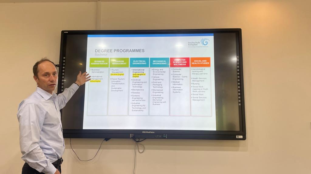 4月17日,Schmid教授为我院师生做“肯普滕应用科学大学学术交流与项目合作”的专题讲座。Schmid教授介绍了肯普滕应用科学大学在应用教学、创新和国际合作等方面的实践,特别是双元制教学以及国际工程专业;双元制教学是将学术学习与实践经验相结合,使学生在整个学习过程中能够与行业合作伙伴密切合作,而英语授课的国际工程专业,使学生能为全球工程领域的职业生涯做好准备。此外,Schmid教授还表示今后可以在联合出版学术期刊、硕士层次的中外合作办学项目、师生交流等方面加强合作。